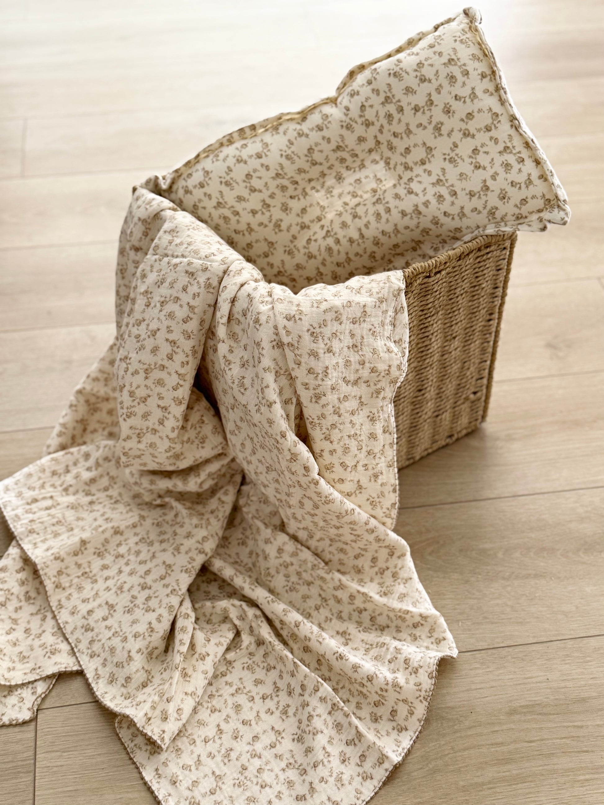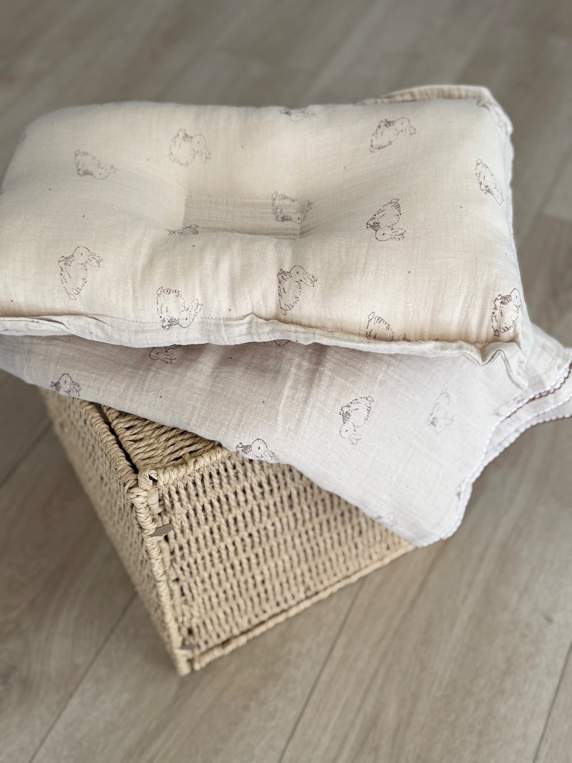 All material - cotton ! Very cozy and calm patterns, perfect for a summer nap in small teepee !