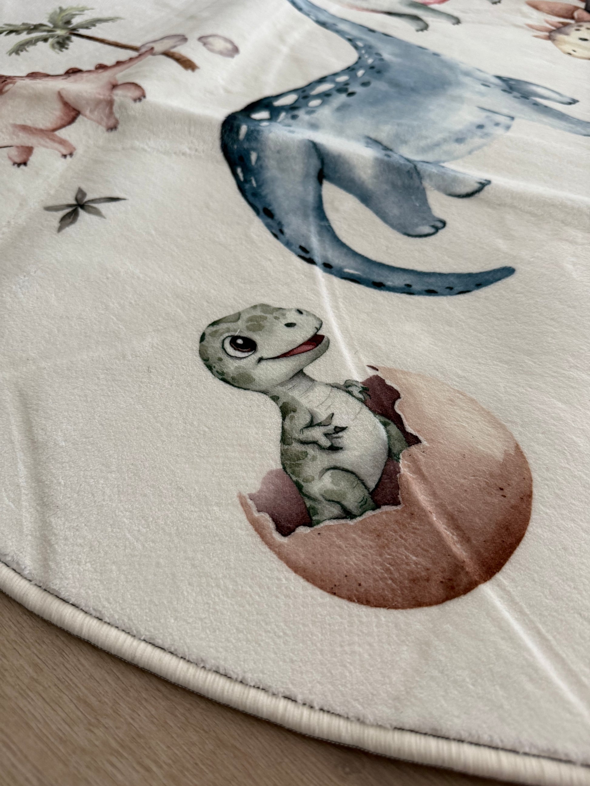 This rug adds a touch of artisanal charm to your little one's space, soft colored children's rug is the perfect accessory to make the nursery or toddler room cozier. The Dino children's rug has diameter 120 cm and not strait round shape ! The rug is super soft, making it the perfect addition to the play, reading or cuddle corner. More over, children's rug is also super practical and easy to maintain. Add warmth and fun to your child's room with Dino round rug !