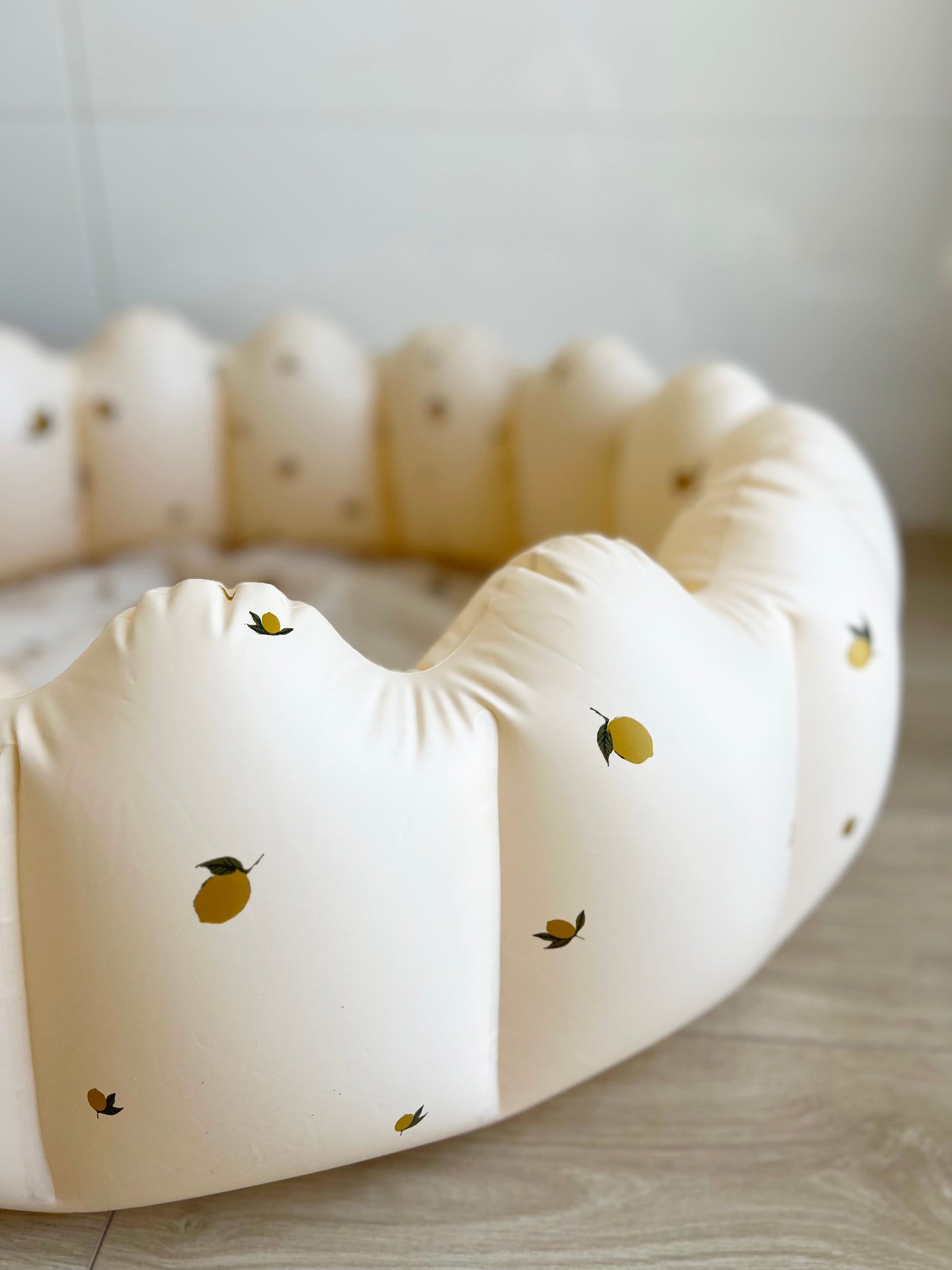 These pools are made of durable materials like PVC and are designed to be safe and fun for children. The lemon design adds a playful and refreshing element to the pool.