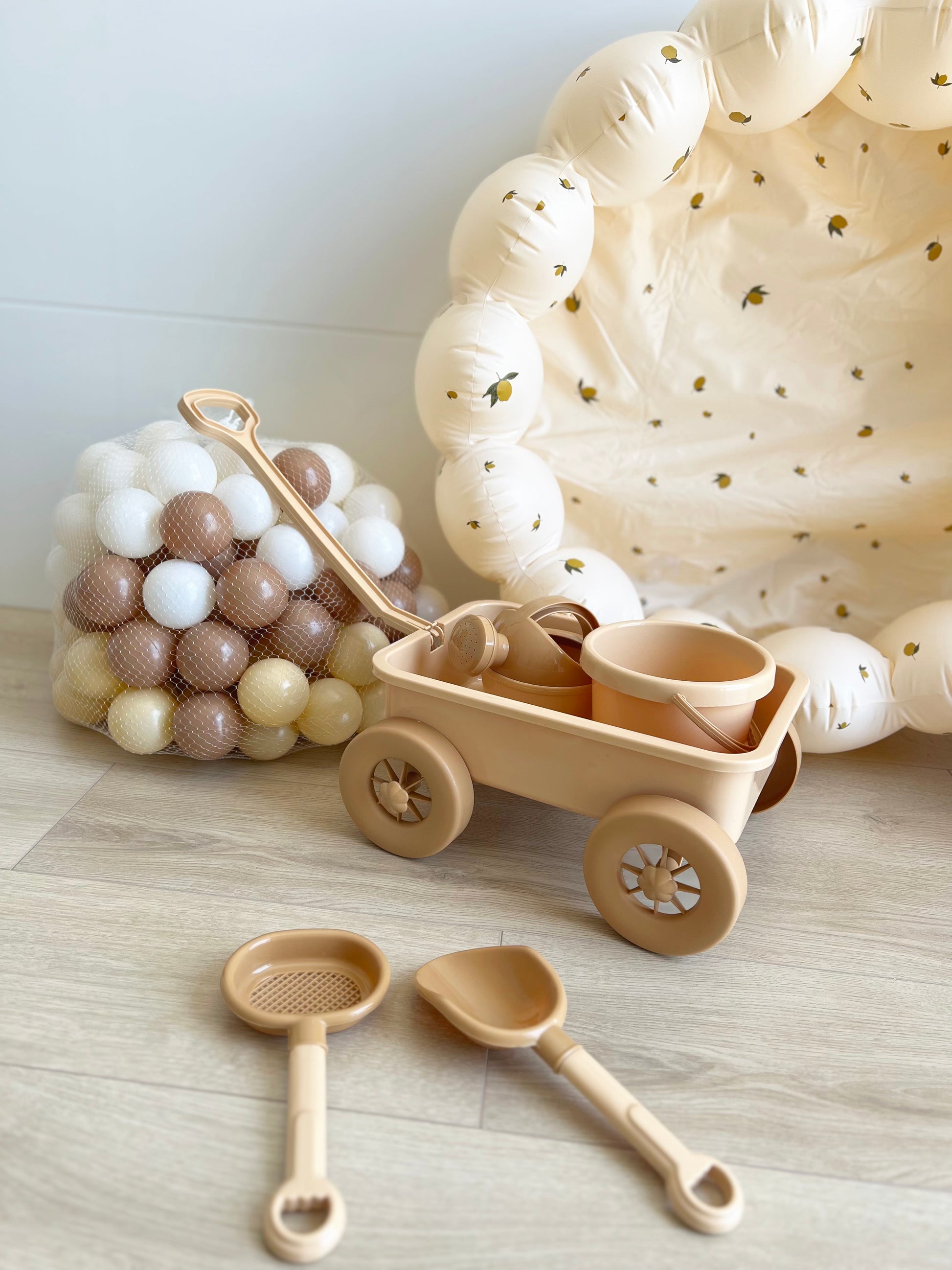 Put some balls or toys inside ! Catching something in the water with little hands is not only great fun, it also trains your motor skills while splashing around.