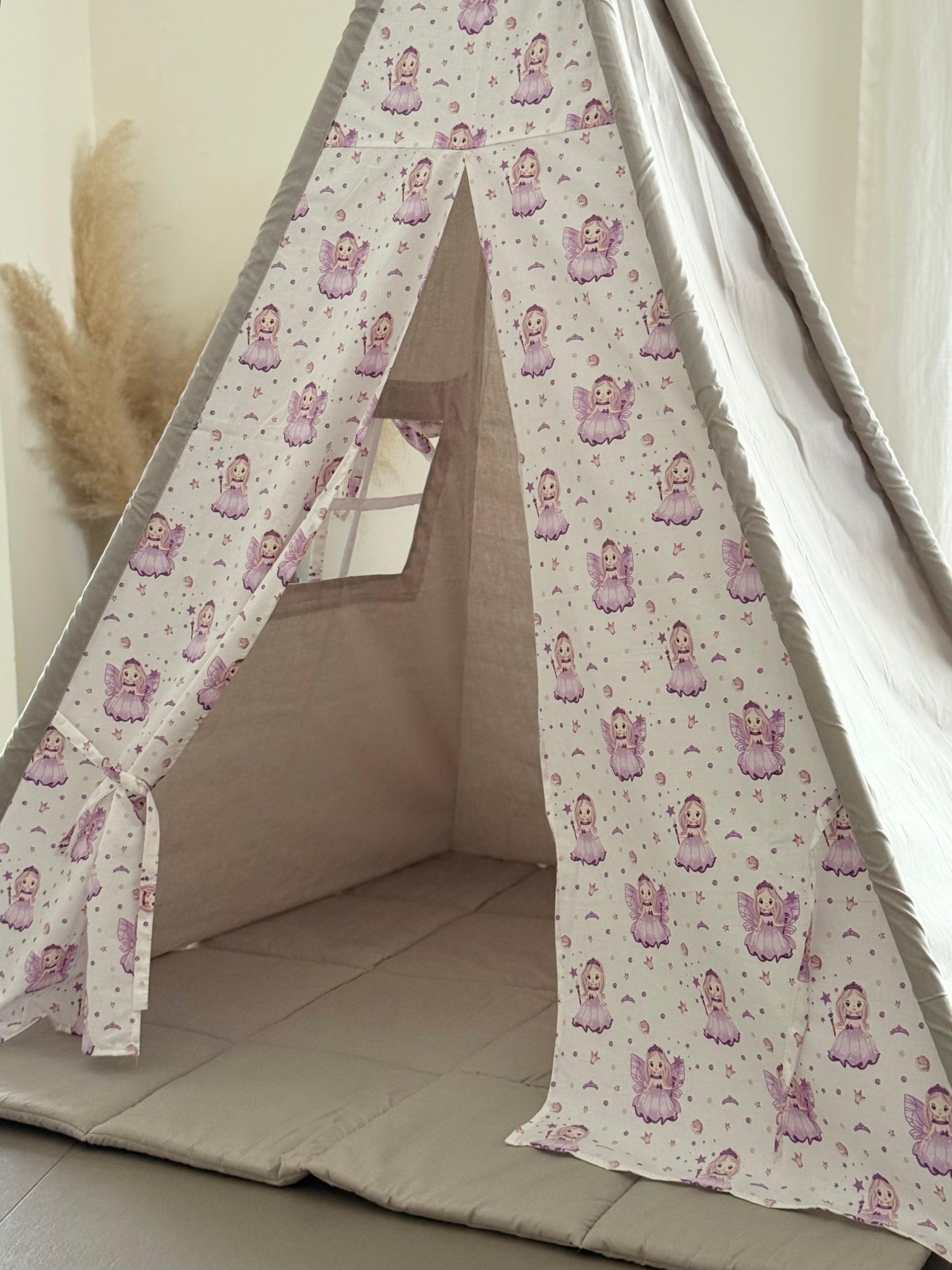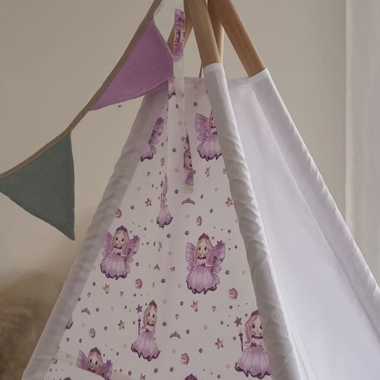 Purple Fairy Teepee is a charming and whimsical space that sparks your child's imagination and creativity. This teepee tent the perfect setting for tea parties, dress-up games, using it as a reading nook and more!