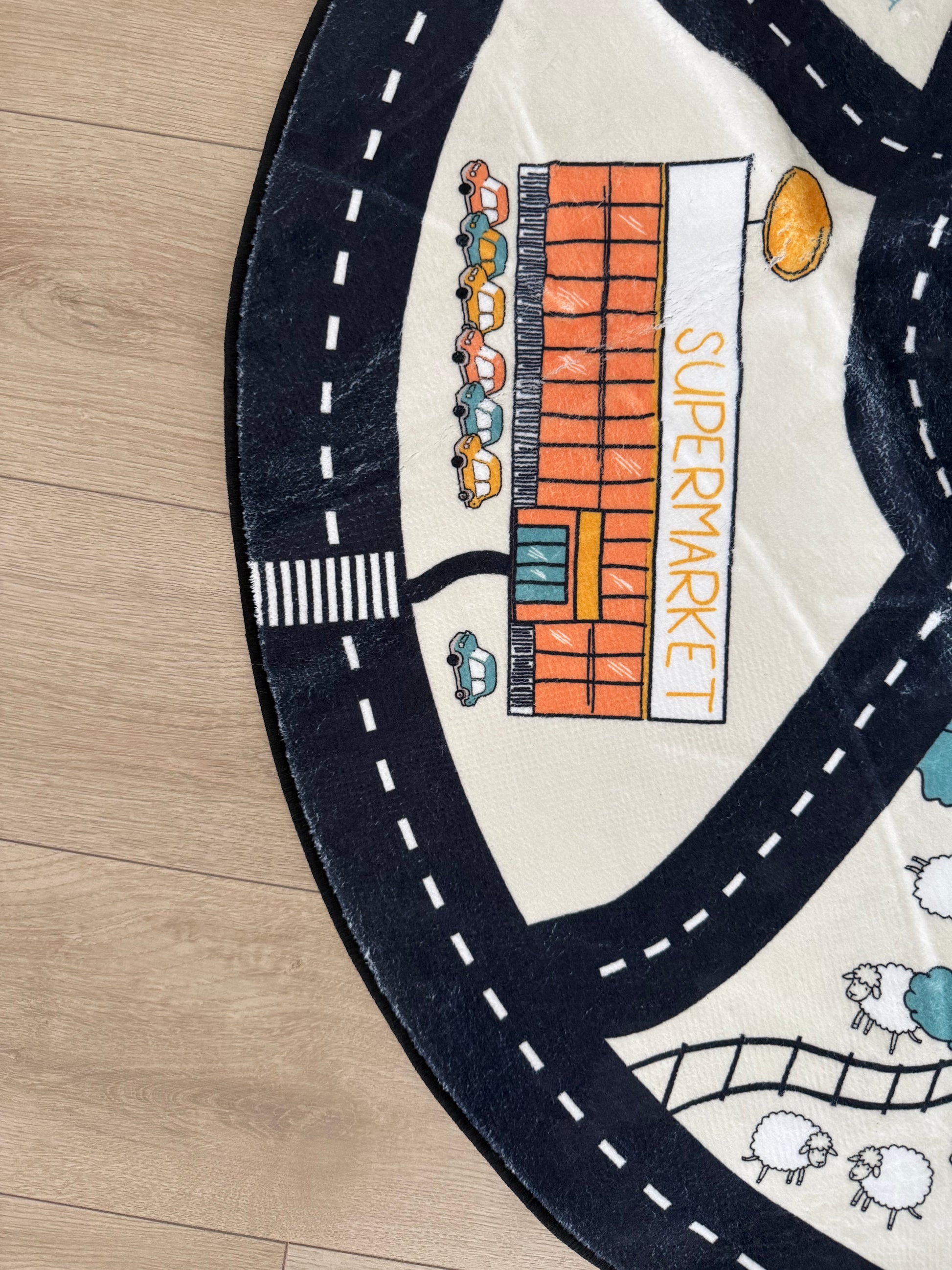 This rug adds a touch of artisanal charm to your little one's space, multicolored children's rug is the perfect accessory to make the nursery or toddler room cozier. The Road children's rug has diameter 120 cm and not strait round shape ! The rug is super soft, making it the perfect addition to the play, reading or cuddle corner. More over, children's rug is also super practical and easy to maintain. Add warmth and fun to your child's room with this rug !