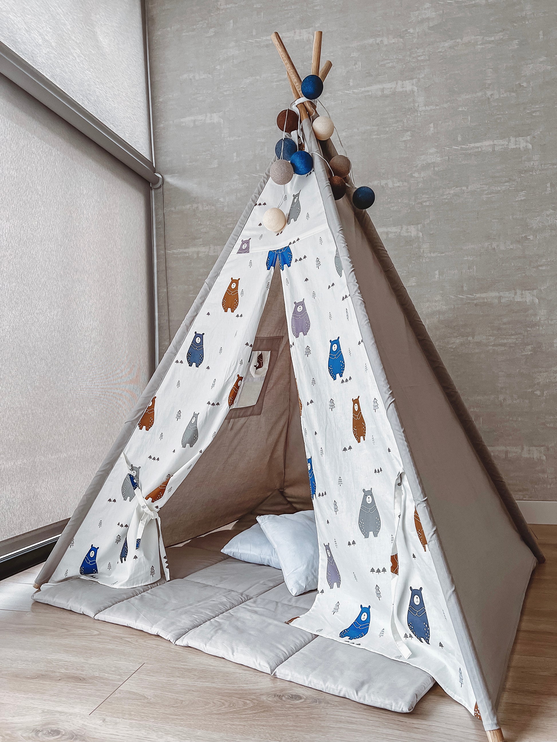 The children's tent - teepee tent is the right place for play, reading and relaxation for our little friends giving them many smiles! Store all the child's toys in it so that his room is tidy. Easy to install and store ! They are made for indoor and outdoor space.