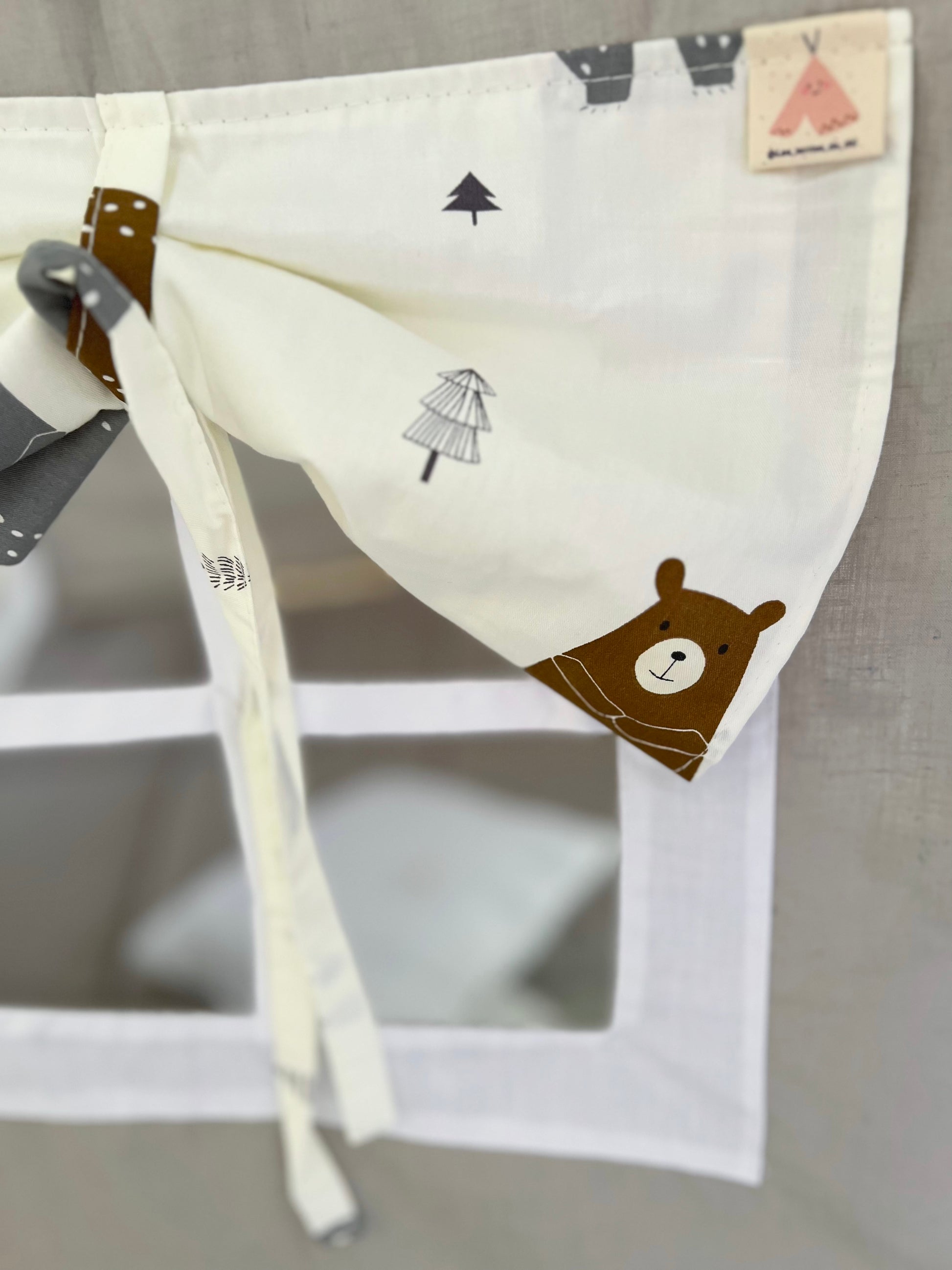 It is suitable for children from 3 years old and up. However, if there is an adult, it can also be used by children under 3 years old because the padded mattress protects the time of the game. Also the mattress at the bottom can be used individually as a playmat. The children's tent is 100% handmade and consists of cotton fabric !