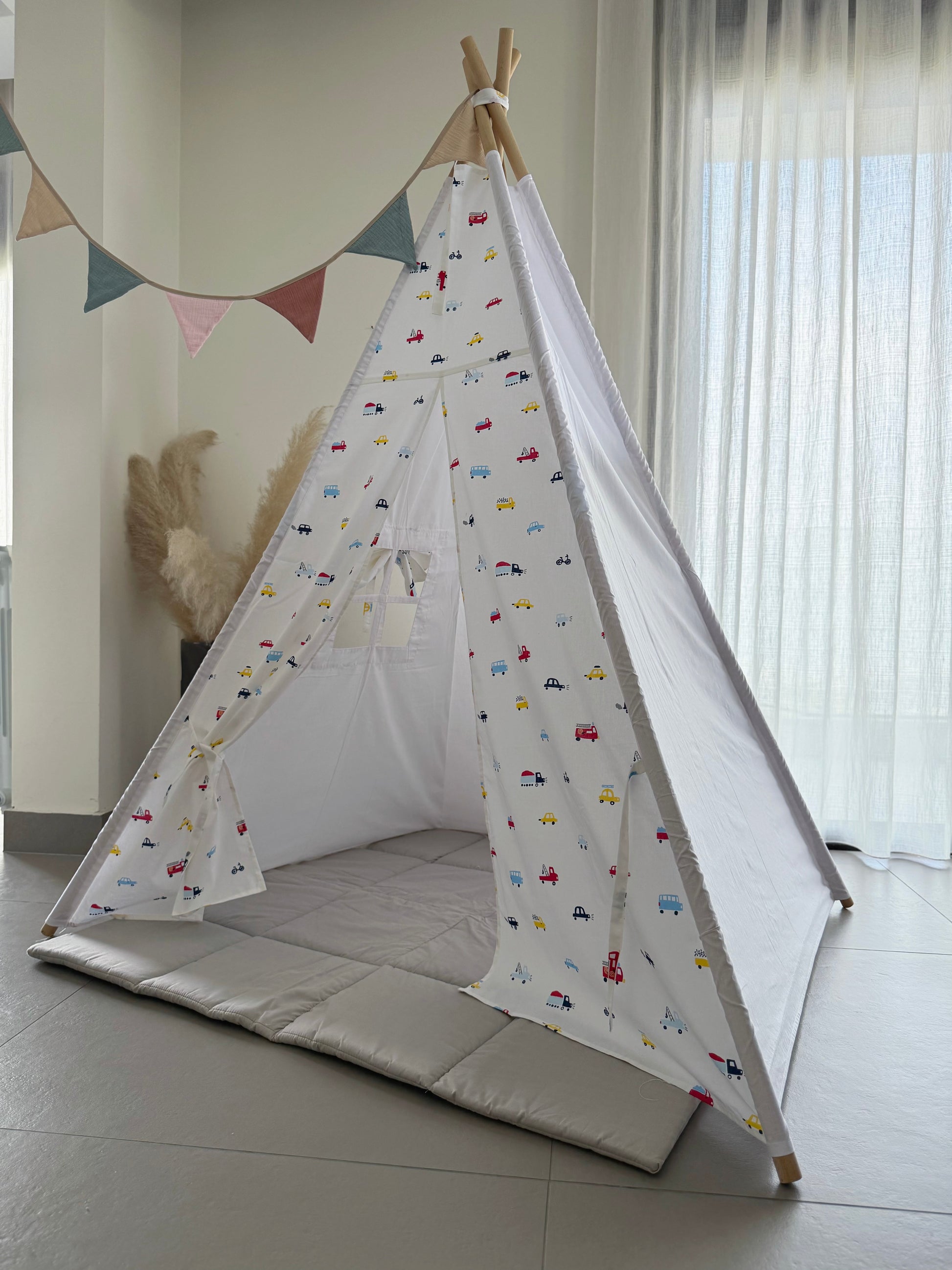 The children's tent - teepee tent is the right place for play, reading and relaxation for our little friends giving them many smiles! Store all the child's toys in it so that his room is tidy. Easy to install and store ! They are made for indoor and outdoor space.